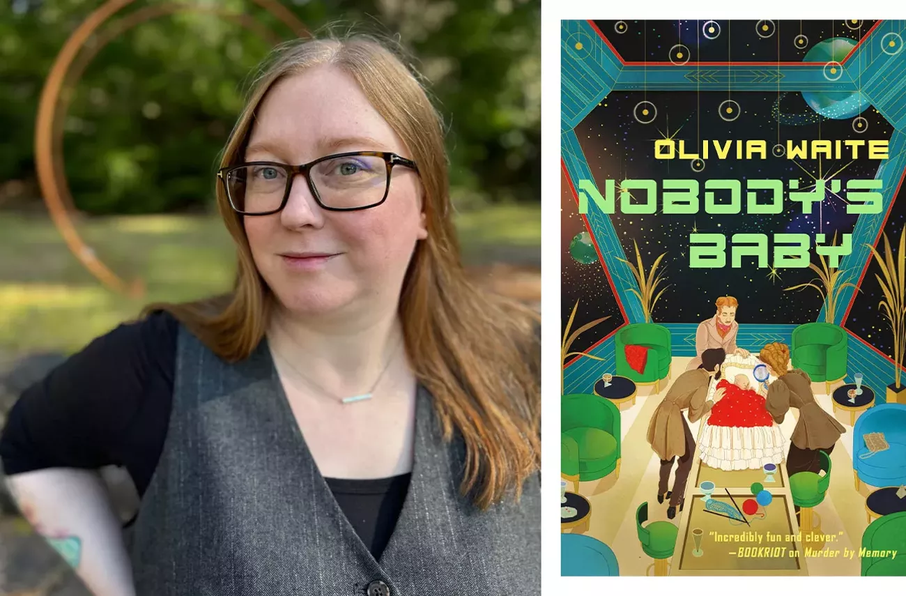 Olivia Waite is a Seattle-based romance, sci-fi, and fantasy author, New York Times romance columnist, Jeopardy! champion, and accomplished fiber artist. I was introduced to her via her novel The Lady’s Guide to Celestial Mechanics, which is not only a beguiling sapphic love story, but also a brilliant ode to the art of science and the science of art. Her latest book, Murder by Memory, a cozy sci-fi mystery set aboard an interstellar passenger liner and the first installment in her Dorothy Gentleman series, came out last March, and the sequel Nobody’s Baby comes out next month. (She’s also currently working on releasing a knitting pattern for the fern shawl that makes a cameo in Murder by Memory.) The Stranger caught up with her about Heated Rivalry, falling in love at karaoke, and how fish-scaling can be surprisingly romantic.