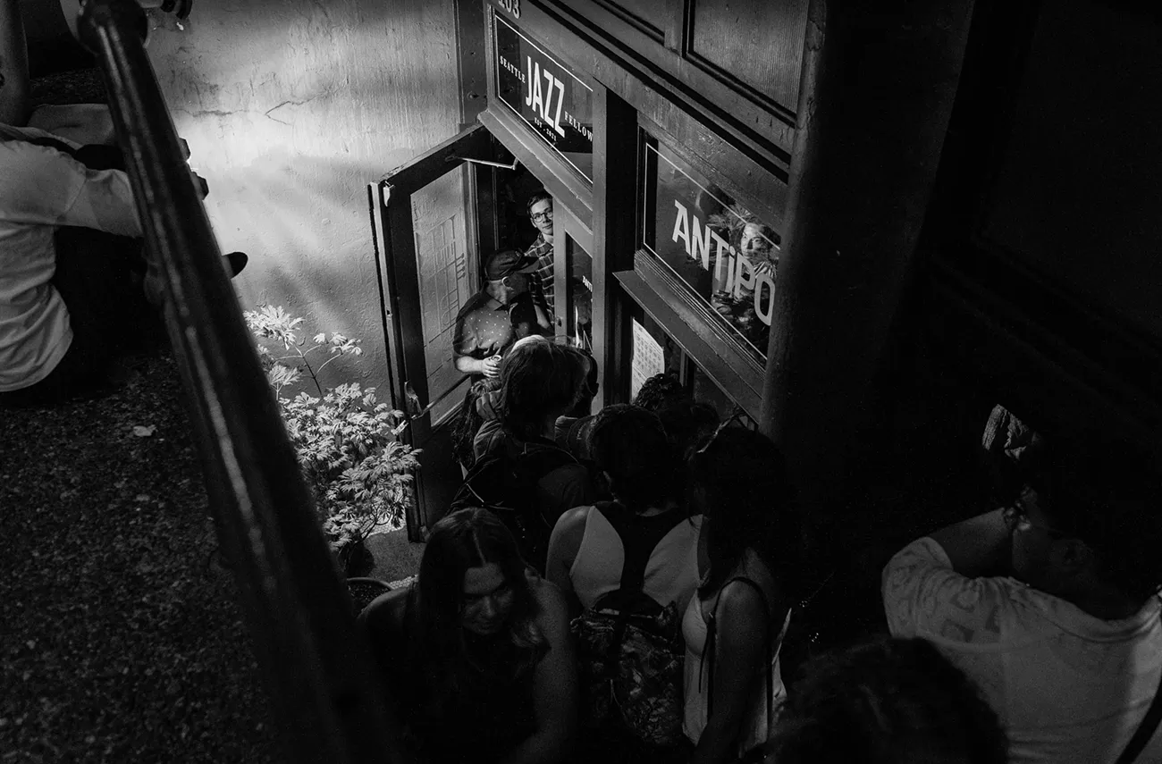 When I ask how all of this success came about, Marriott answers: “You know, 20- to 30-year-olds, and really any person living in Seattle in this particular time, where everything is outrageously expensive, will be attracted to quality events that are affordable. Our shows are free. And we are doing our best to make jazz music accessible by making it easy to get to. So, Jazz Night in Pioneer Square, both of those events that happened this year [one was in February], were 100 percent free and unticketed. All you had to do was show up. There was no barrier to access the music, and we do that in our own venue, as well. So, Monday night is free.” The Fellowship, which is a nonprofit, does, however, suggest a donation or entry with a membership. At the end of the day, musicians must get paid.